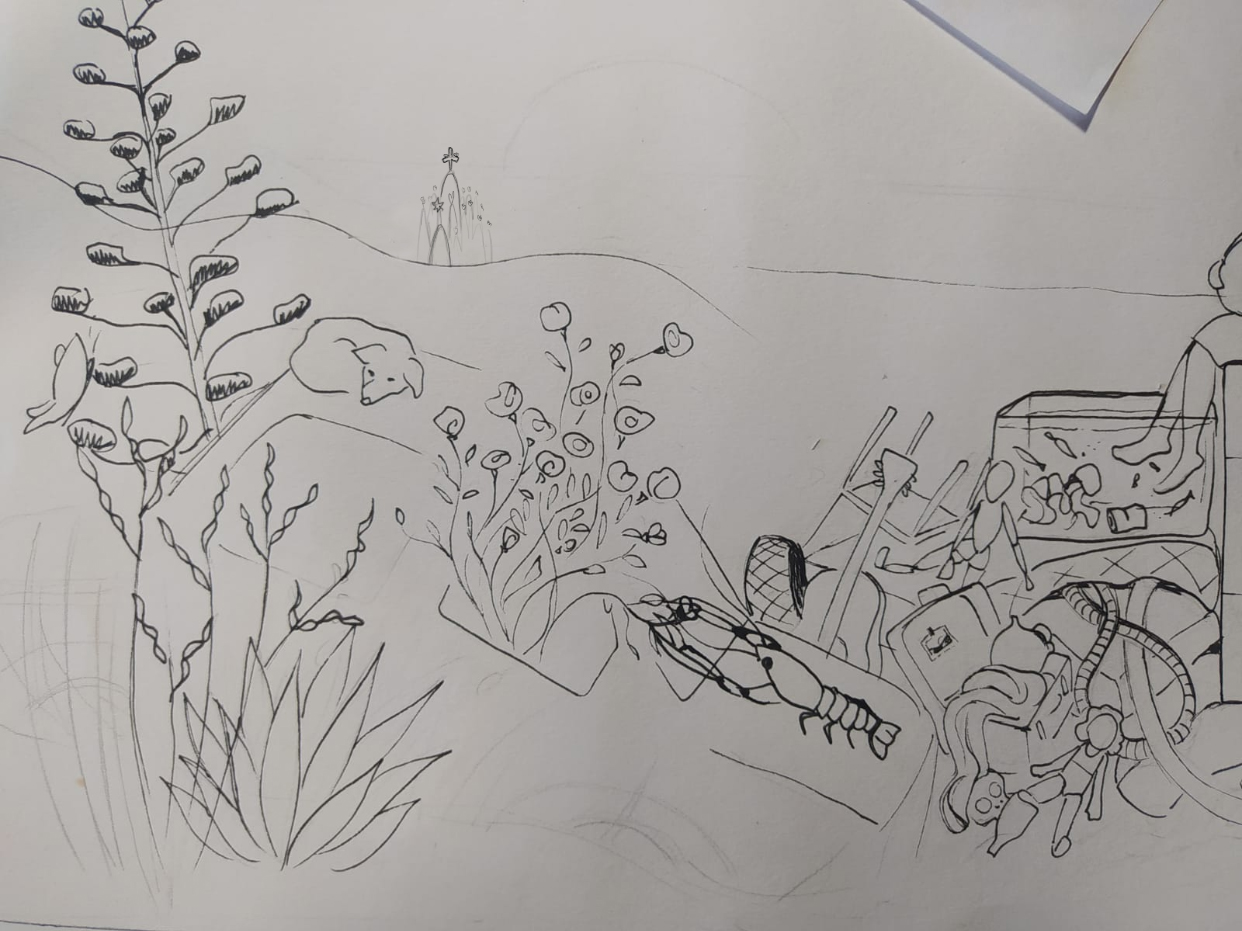 Past and future. We live the present today with the lighting of the star that shows the forecasts were good: right from the terrace of this house “dressed” with the mural, Maria’s tower sticks out lifting light over the “peeled mountain”. The sketches are from before the tower began to stand out, so the intuition has not failed, the Penitent district will get, starting from today, a new star on the horizon.